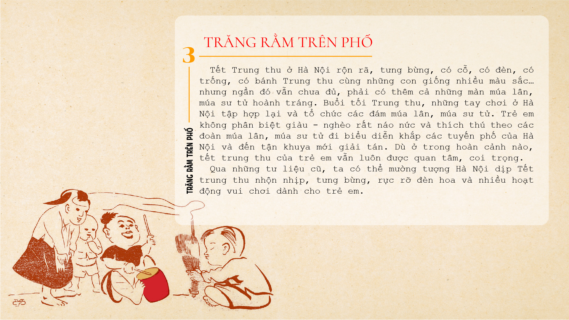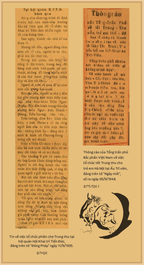 Qua những tư liệu cũ, ta có thể mường tượng Hà Nội dịp Tết trung thu nhộn nhịp, tưng bừng, rực rỡ đèn hoa và nhiều hoạt động vui chơi dành cho trẻ em.