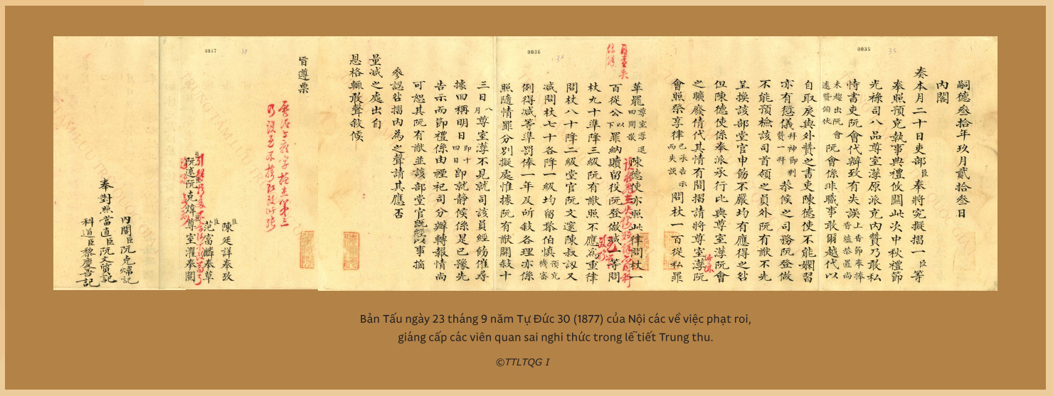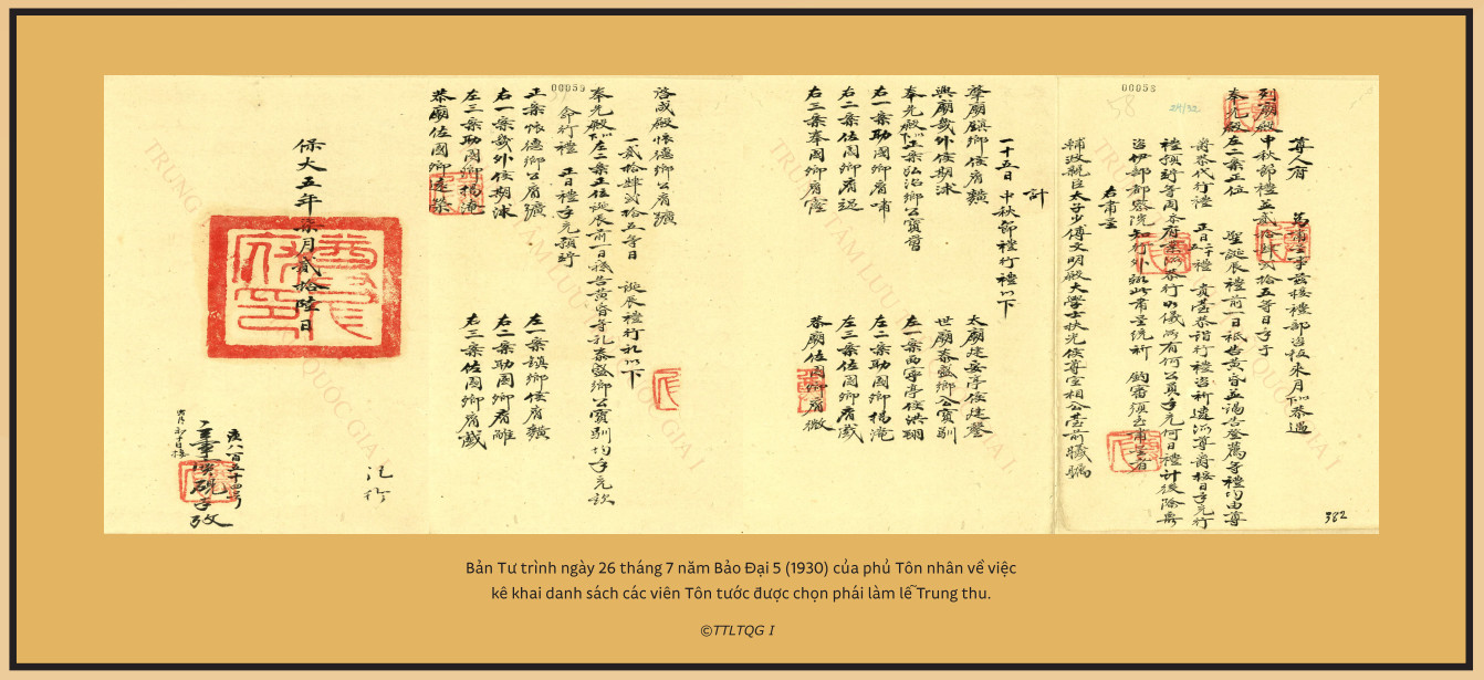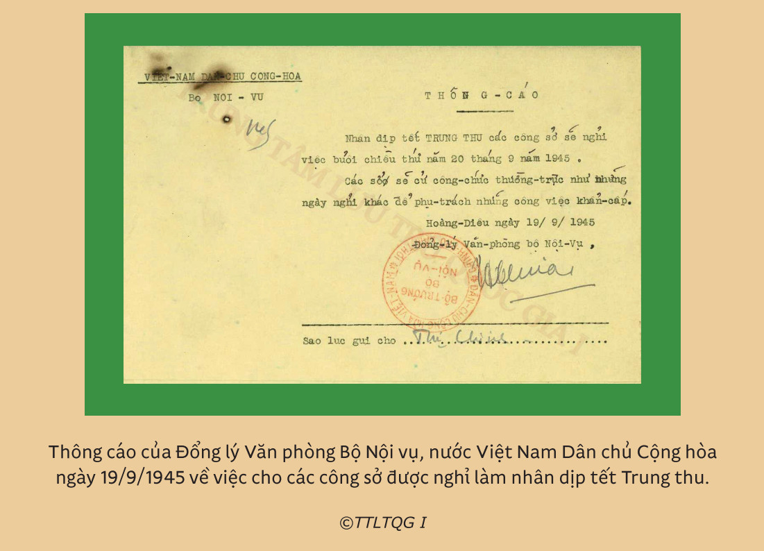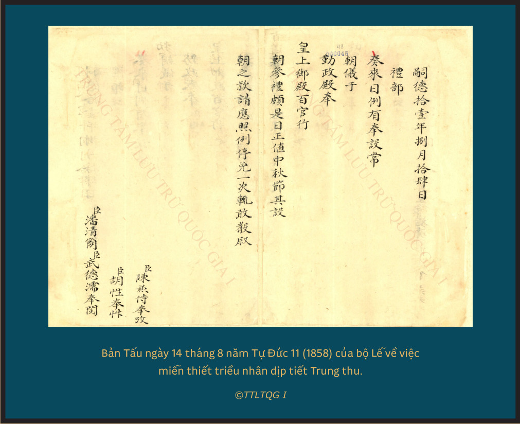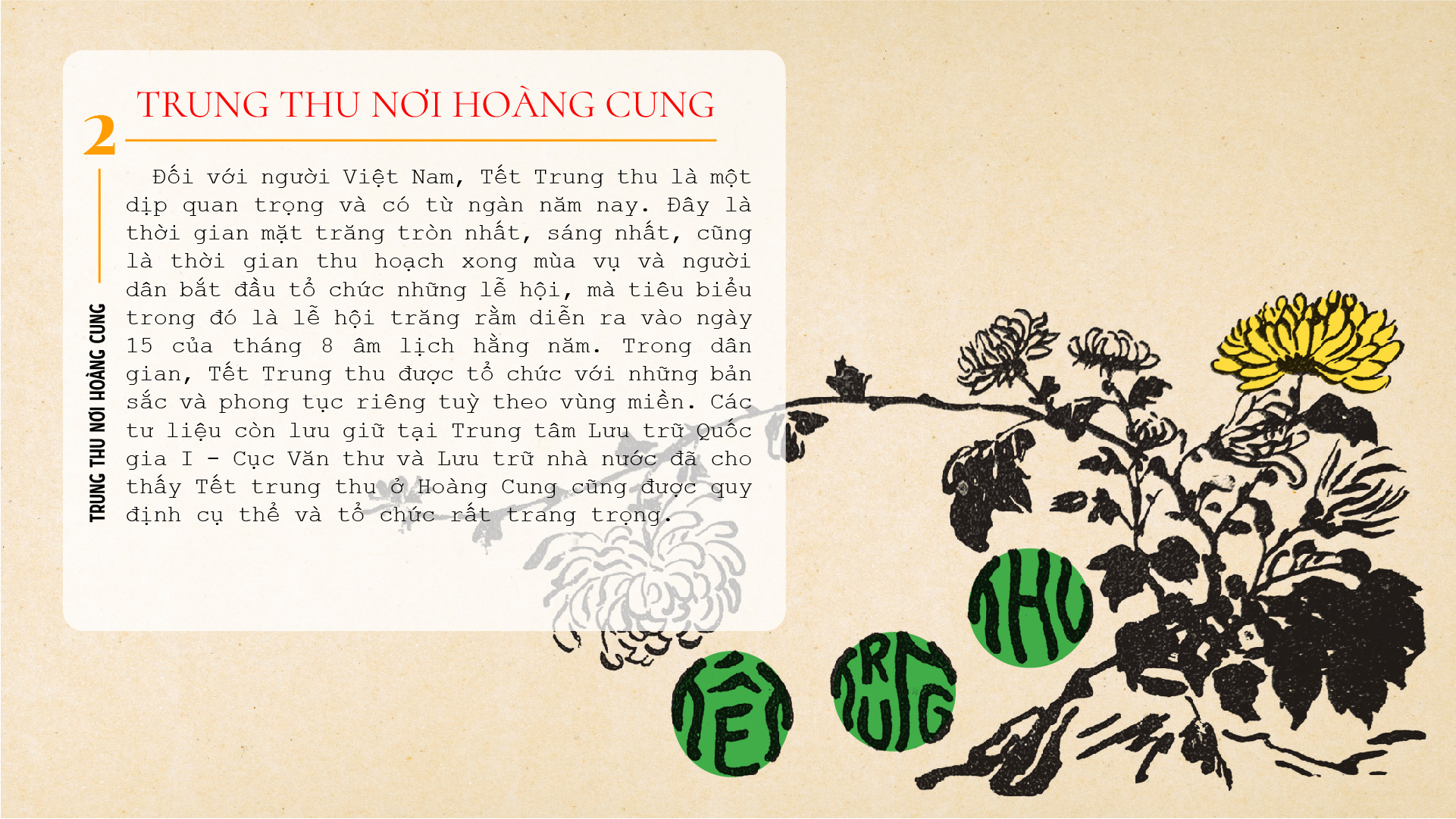Đối với người Việt Nam, Tết Trung thu là một dịp quan trọng và có từ ngàn năm nay. Đây là thời gian mặt trăng tròn nhất, sáng nhất, cũng là thời gian thu hoạch xong mùa vụ và người dân bắt đầu tổ chức những lễ hội, mà tiêu biểu trong đó là lễ hội trăng rằm diễn ra vào ngày 15 của tháng 8 âm lịch hằng năm. Trong dân gian, Tết Trung thu được tổ chức với những bản sắc và phong tục riêng tuỳ theo vùng miền . Các tư liệu còn lưu giữ tại Trung tâm Lưu trữ Quốc gia I - Cục Văn thư và Lưu trữ nhà nước đã cho thấy Tết trung thu ở Hoàng Cung cũng được quy định cụ thể và tổ chức rất trang trọng.